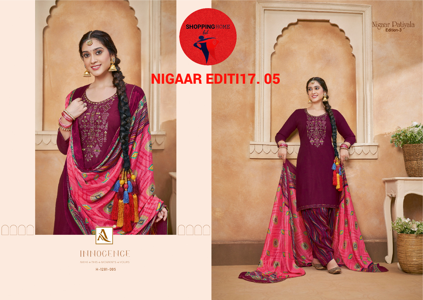 ALOK SUIT NIGAAR PATIYALA VOL 3 /17 VISCOSE UNSTICHED INDIAN 3PIECE. 05 Sold out 2,320.00 BDT 0.00 BDT