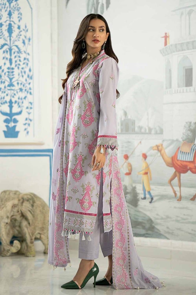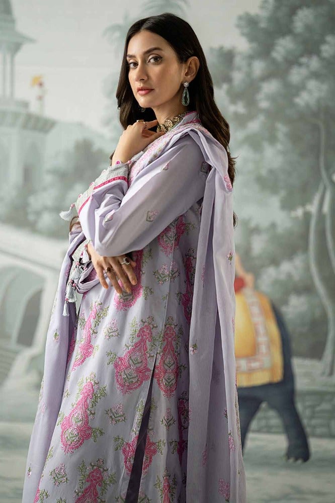 Fabric:Embroidered Denting Lawn Dupatta - 2.50 Meters EmbroideredLawn Shirt with Embroidered Border for Front & Back – 2.78 MetersDyed Trouser - 1.75 Meters